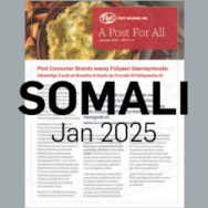 To follow our journey, please read our “A Post for All” newsletter, recognizing All In @Post initiatives from across the company. These efforts have a sustained impact on our work environment, our people and our results. The newsletter is available in English, Spanish, Somali, Haitian Creole and Hmong.
